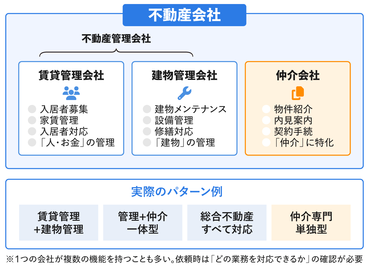 - 不動産管理会社・賃貸管理会社・建物管理会社・仲介会社などの違い