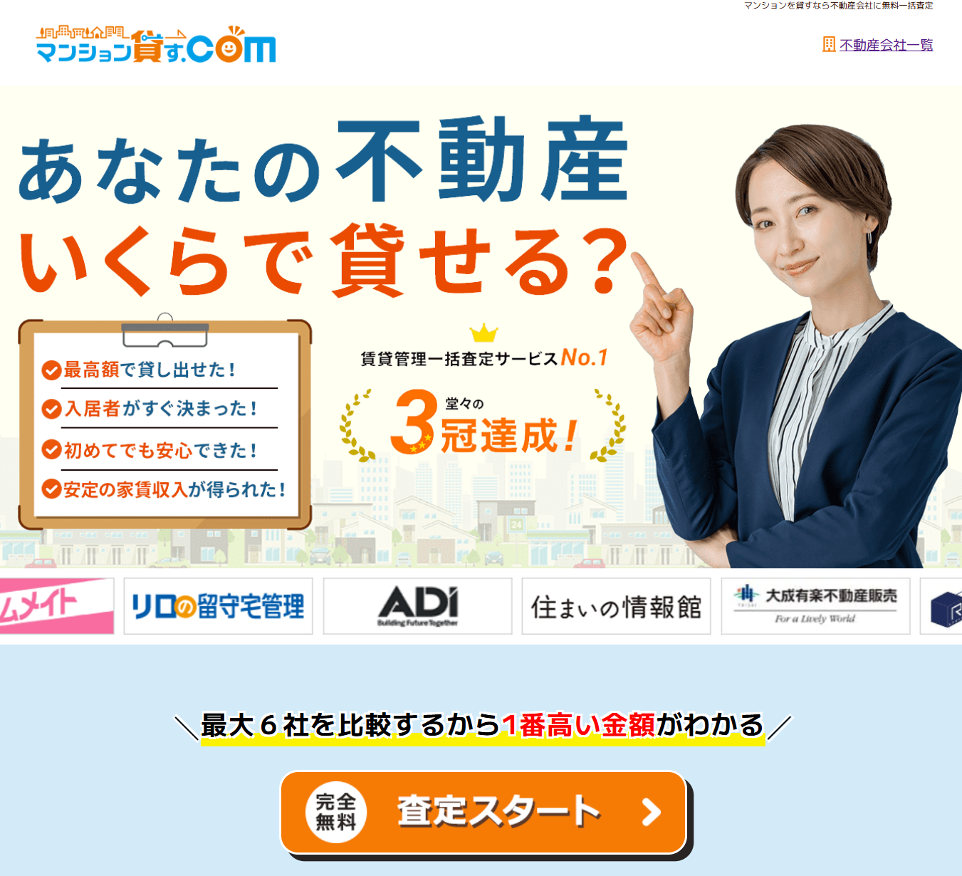 そんなときに便利なのが、賃貸管理会社の一括比較サービス「マンション貸す.com」です。