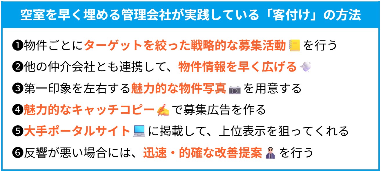 ◆空室を早く埋める管理会社が実践している「客付け」の方法