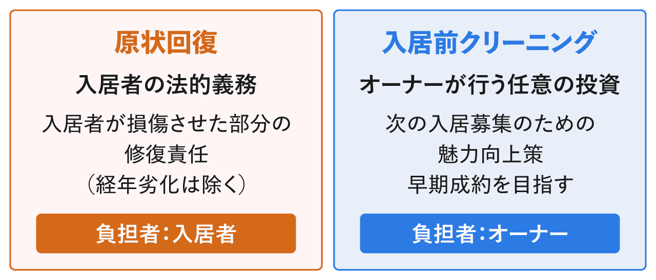 クリーニングに関連して混乱しやすい、「原状回復」についても、ここで整理しておきましょう。