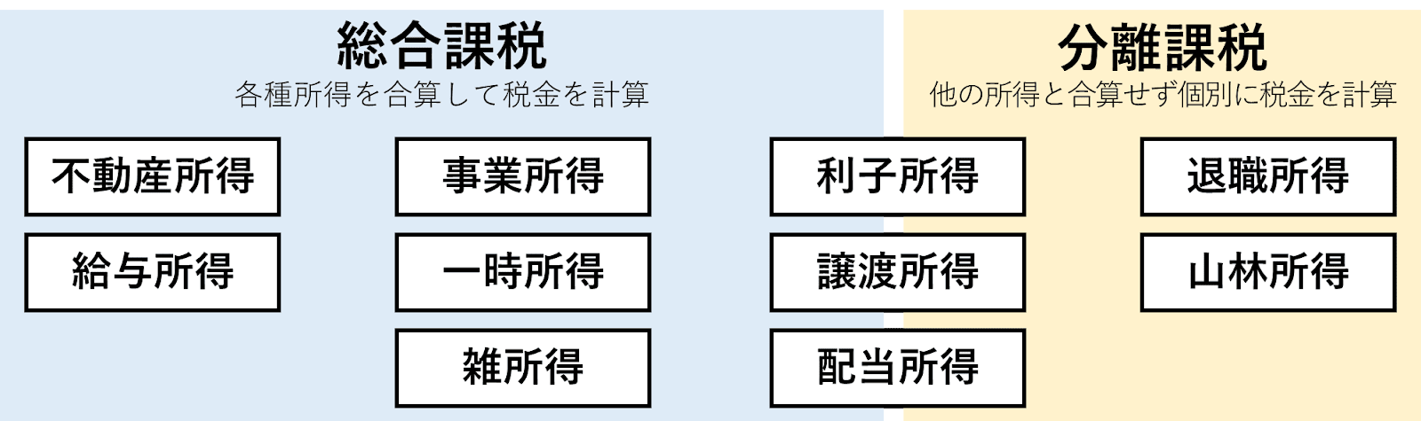 ※利子所得、譲渡所得、配当所得は、総合課税になる場合と分離課税になる場合があります。