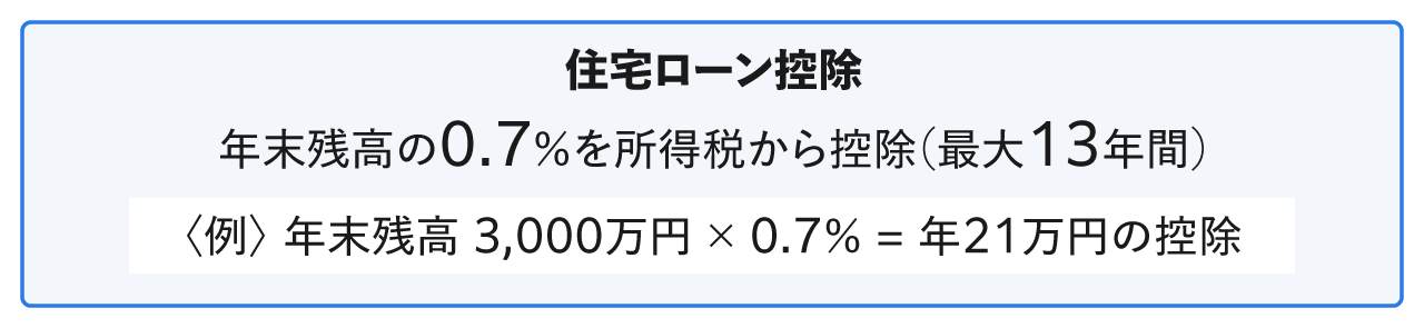 住宅ローン控除は、住宅ローンを借り入れて住宅の新築や購入などをした場合に、年末のローン残高の0.7%を所得税(一部住民税)から最大13年間控除する制度です。