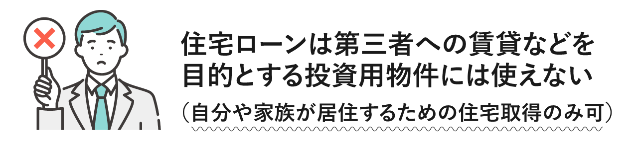 まず押さえたい大前提として、住宅ローンは、賃貸運用を目的とした物件の購入には認められていません。