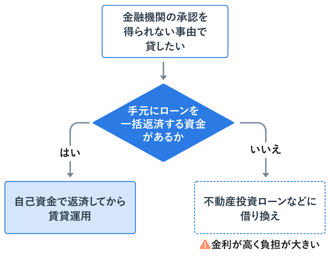 - 金融機関の承認を得られない事由で貸したいときは借り換えしかない