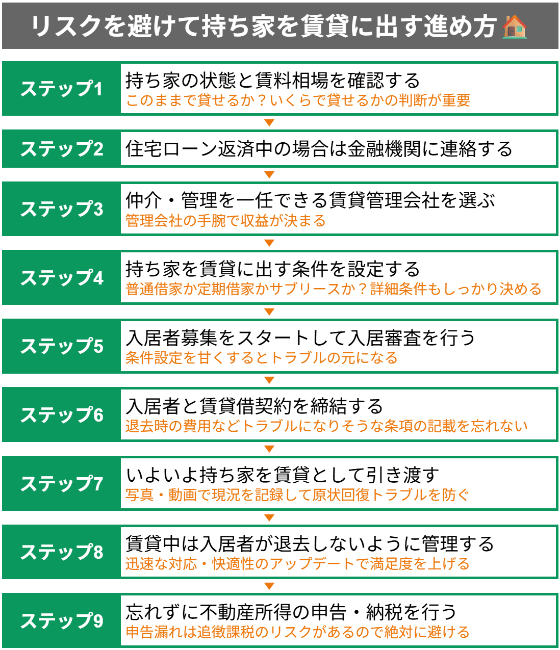 【リスクを避けて持ち家を賃貸に出す進め方9ステップ】