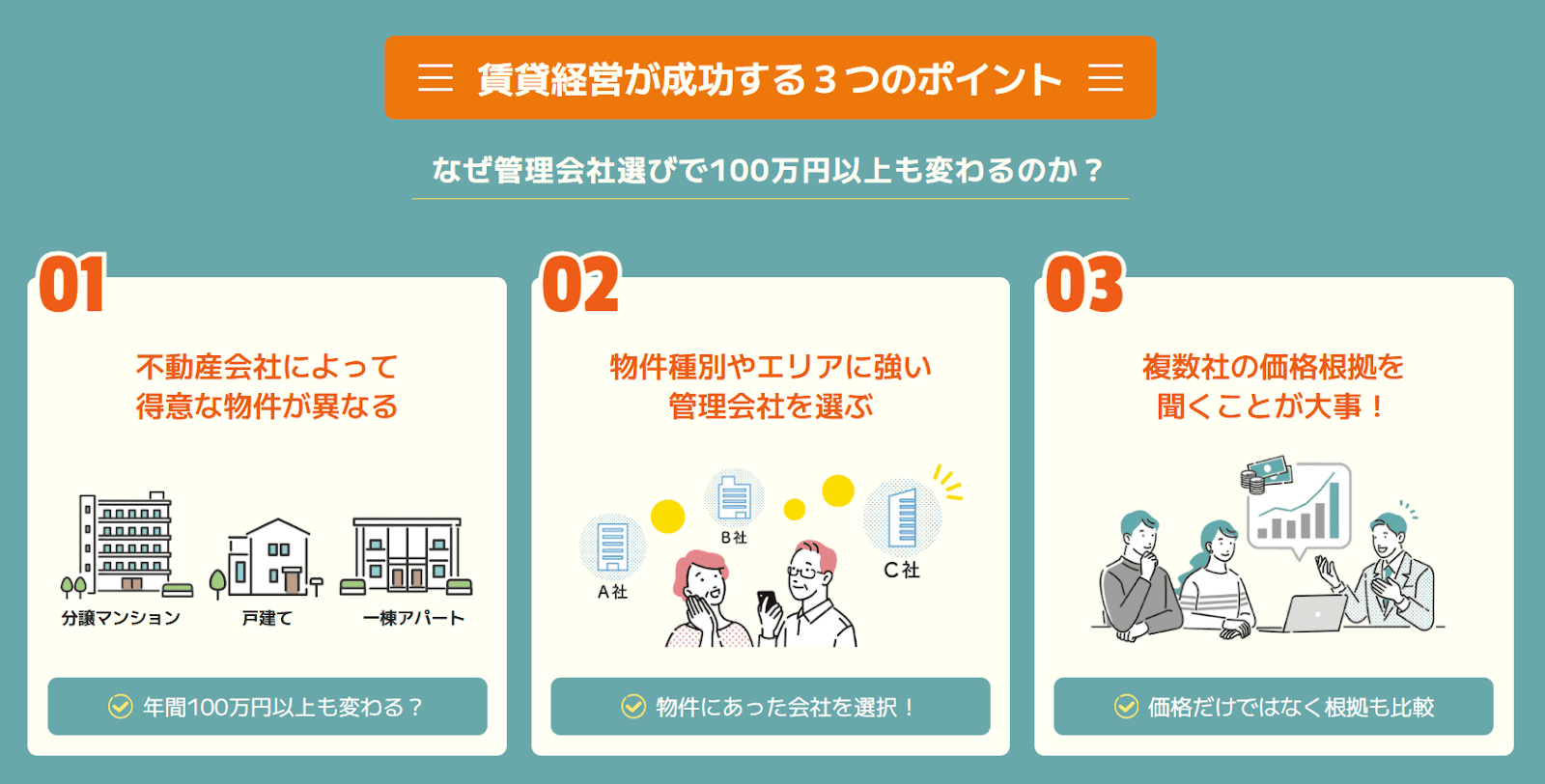 「しっかり準備・対策して順番どおりに進めること」と「良い賃貸管理会社を比較して選ぶこと」が成功の最短ルートです。