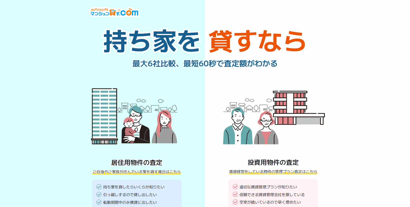 賃貸経営の成功には信頼できる管理会社選びが不可欠です。複数の賃貸管理会社を比較・検討したい方は、ぜひ「マンション貸す.com」の一括査定をご活用ください。