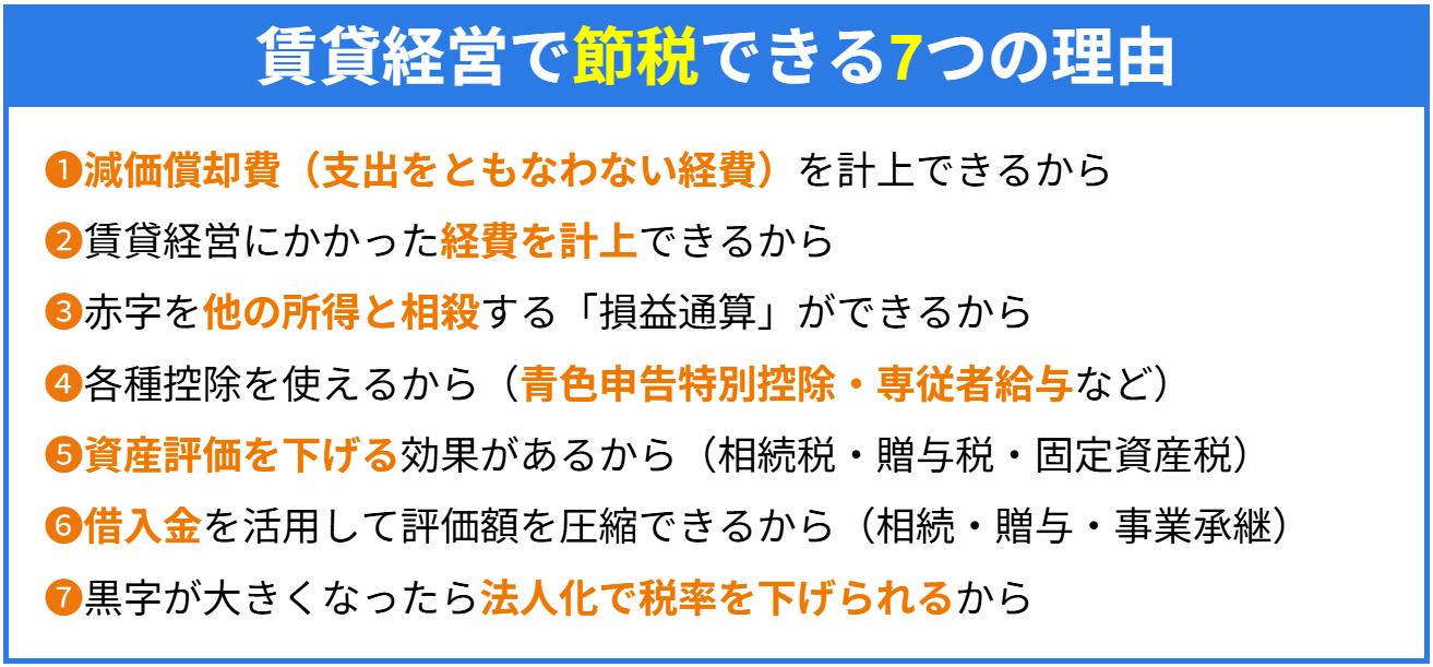 この章では、賃貸経営に特有の仕組みや制度をもとに「節税できる7つの理由」を整理します。