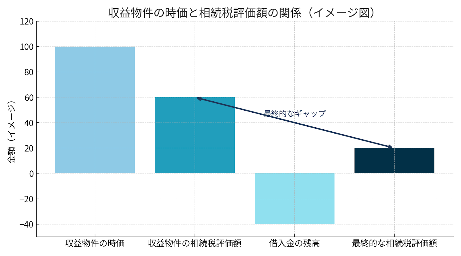 賃貸経営で借入金を使うことで、相続や贈与、事業承継の場面で用いられる「相続税評価額」を大きく圧縮できる効果があります。
