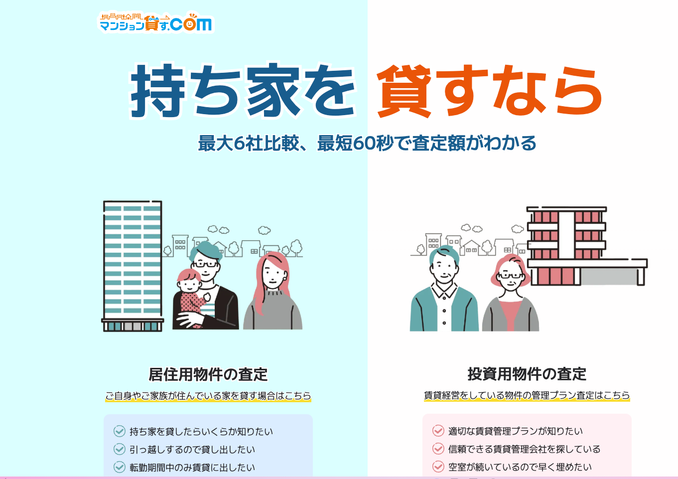 デメリットを最小限に抑えるための事前準備でぜひ活用していただきたいのが、厳選された信頼性の高い提携先のみを紹介してもらえる『マンション貸す.com』です。