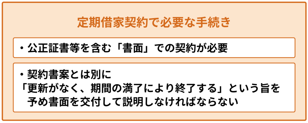なぜなら、定期借家を成立させるには、契約書の作成だけでなく、「更新がされない旨の説明」など、法令で定められた手続きを満たす必要があるからです。