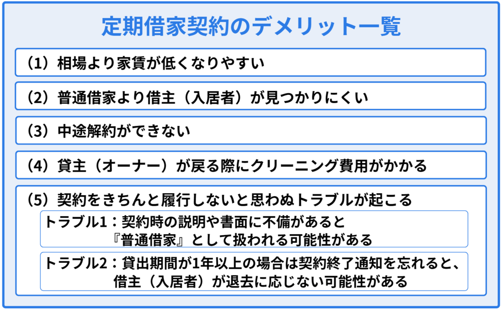 - 定期借家を検討するうえで必ず知っておきたいデメリット5つ