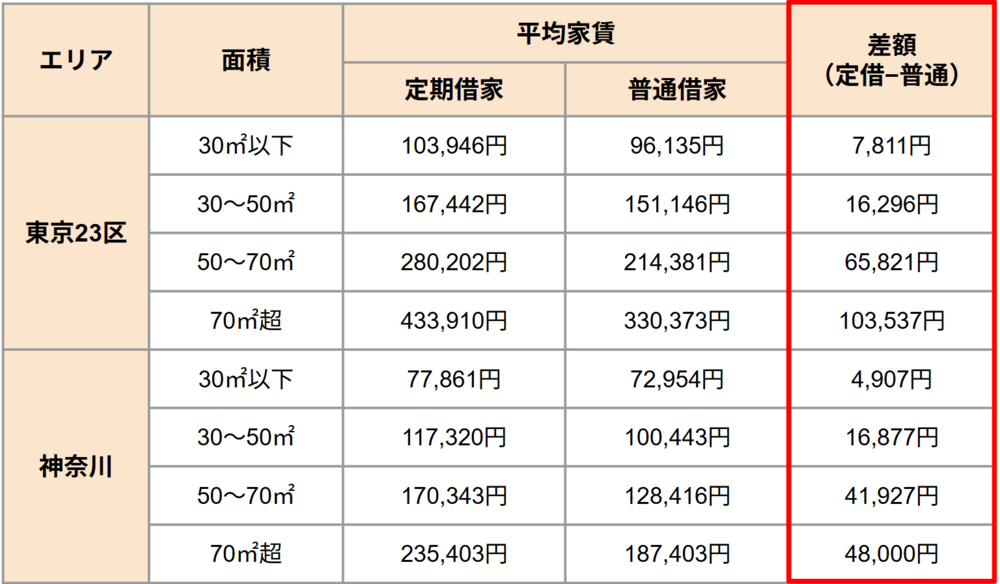 実際、アットホームの調査によれば、東京23区と神奈川県の賃貸マンションでは、定期借家の平均募集家賃が普通借家の平均募集家賃を上回る結果が示されていました。