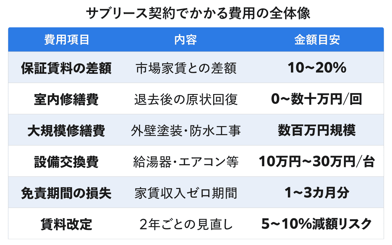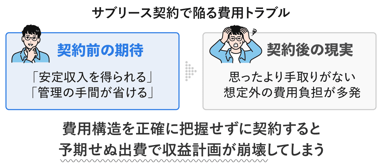 - サブリース契約で実際に発生する費用の全体像が明確になる