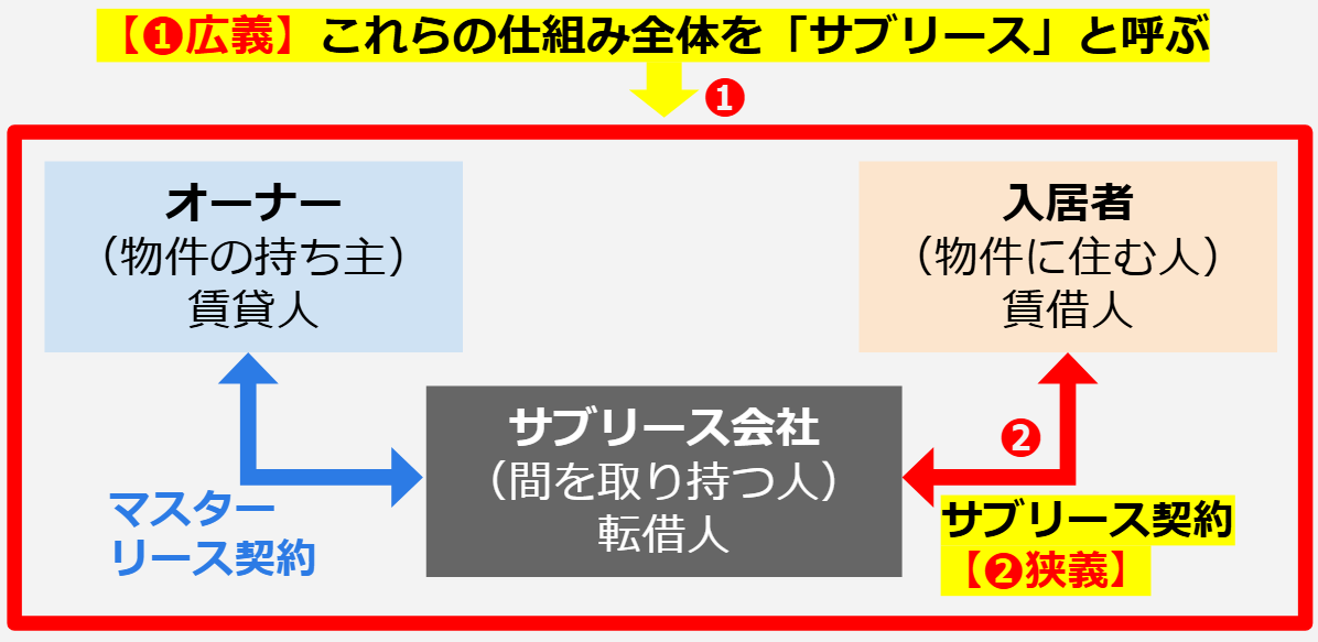 - サブリースには狭義・広義の2つの使われ方がある