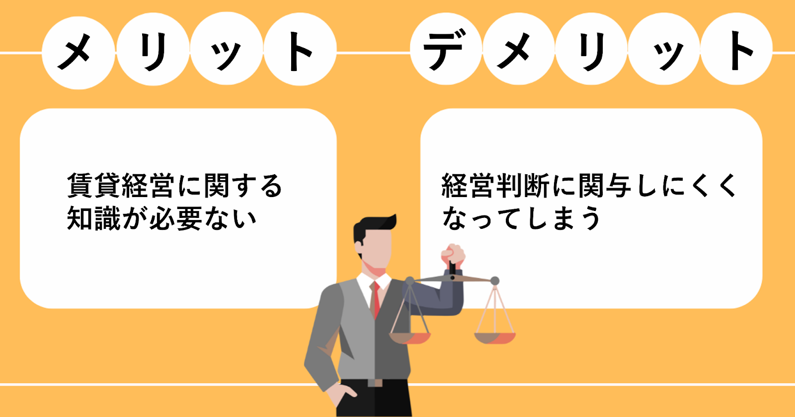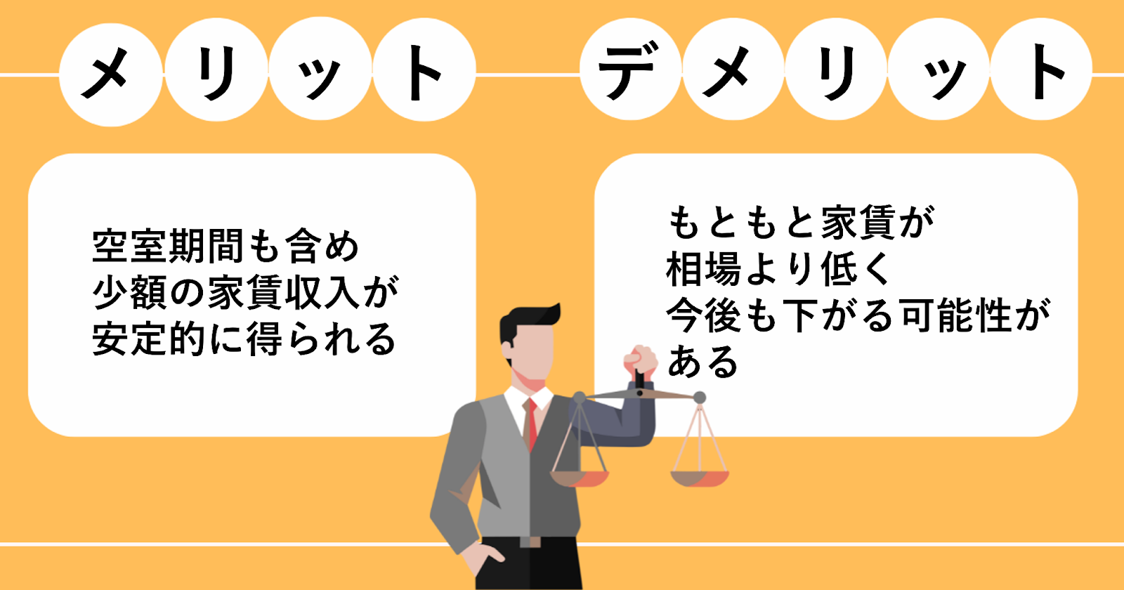 基本的に、「借地借家法」によりサブリース会社は借主側として保護され、オーナーよりも優位な立場にあるため、このようにメリットとデメリットが表裏一体となります。