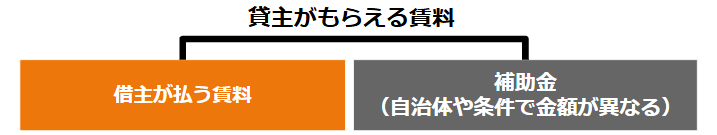 家賃低廉化補助で4万円を追加すると、貸主が受け取れる賃料は9万円になりますが、大幅に増えるわけではありません。