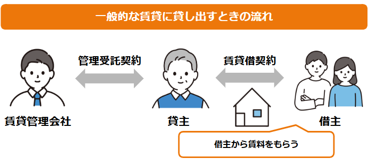 まずは、一般的な賃貸物件として貸し出す方法です。通常の賃貸物件と同様に、賃貸管理会社と契約をして入居者募集や管理を行います。