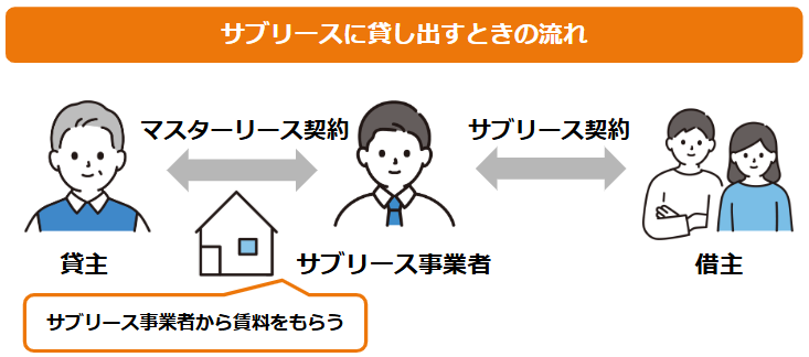 空き家を賃貸に出す方法としては、サブリース事業者に貸し出すことも検討できます。サブリースとは、貸主がサブリース事業者と賃貸借契約を締結して、サブリース事業者が入居者に転貸する方法です。
