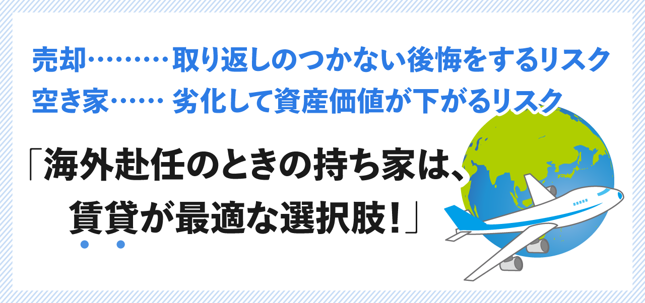 売却による現金化は、とくに長期赴任者にとって、新たな人生設計のために役立ちます。