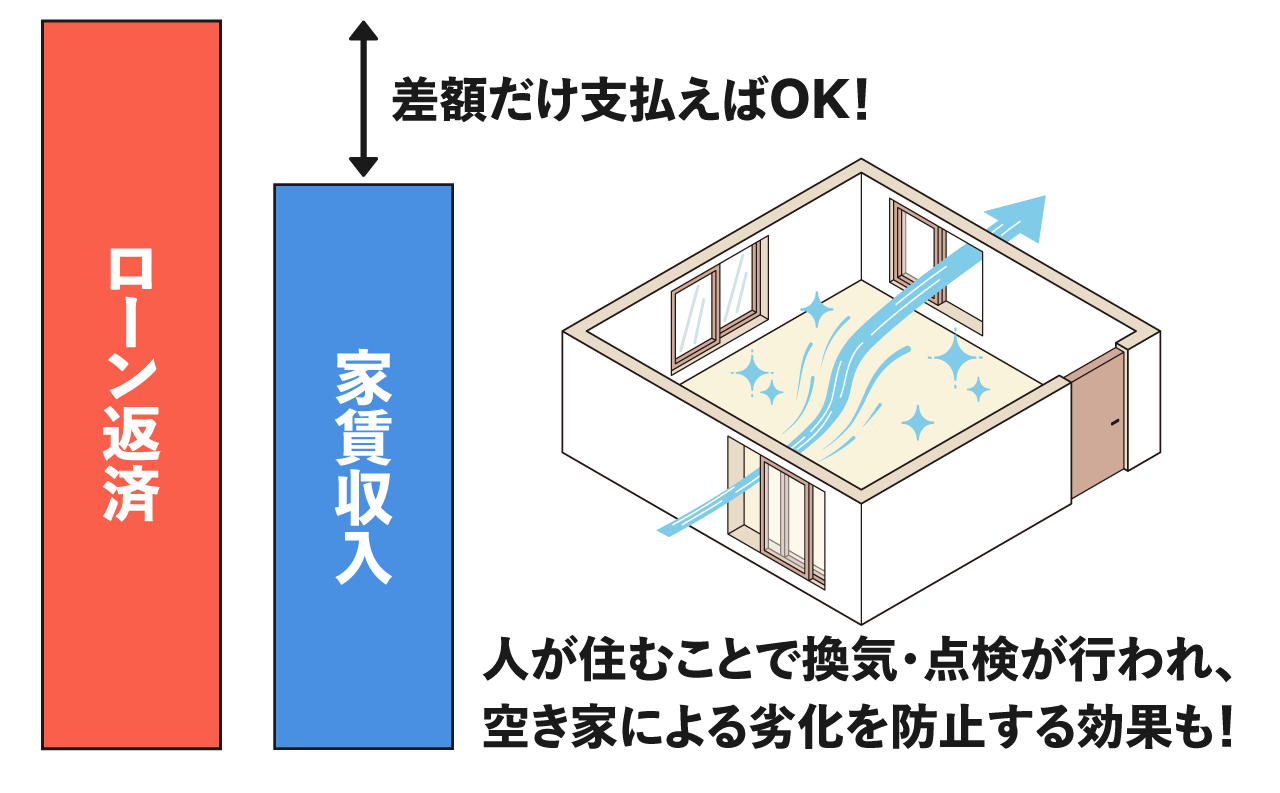 ◎メリット1:大切な資産を守りながら家賃収入でローンを賄える