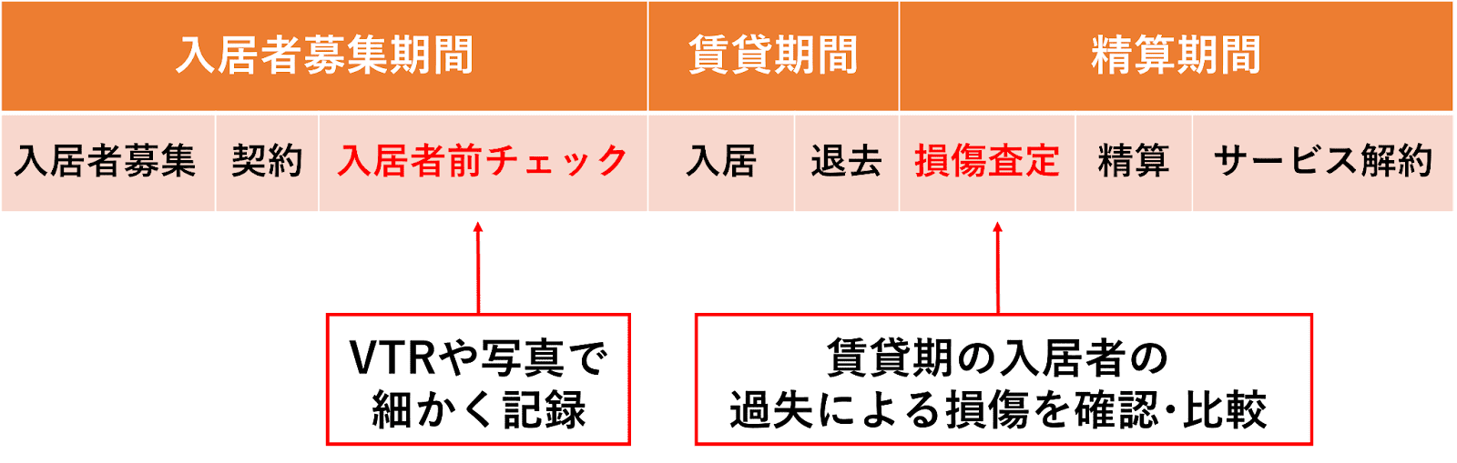 - 雨や水漏れ、第三者の侵入時の軽先報告や修理手配