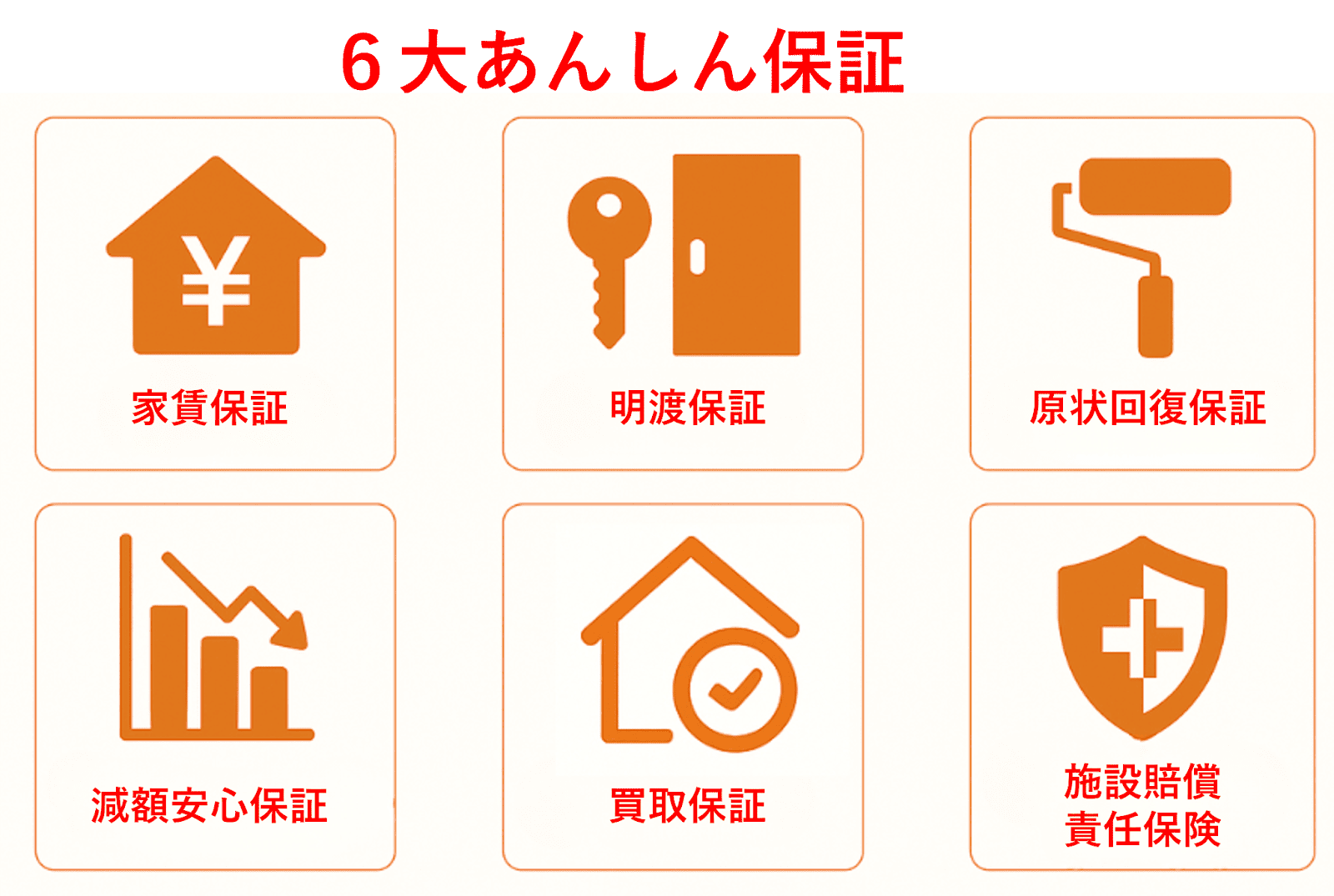 ・空室保証 ・賃料滞納保証 ・明渡し保証 ・修繕・設備トラブル保証 |