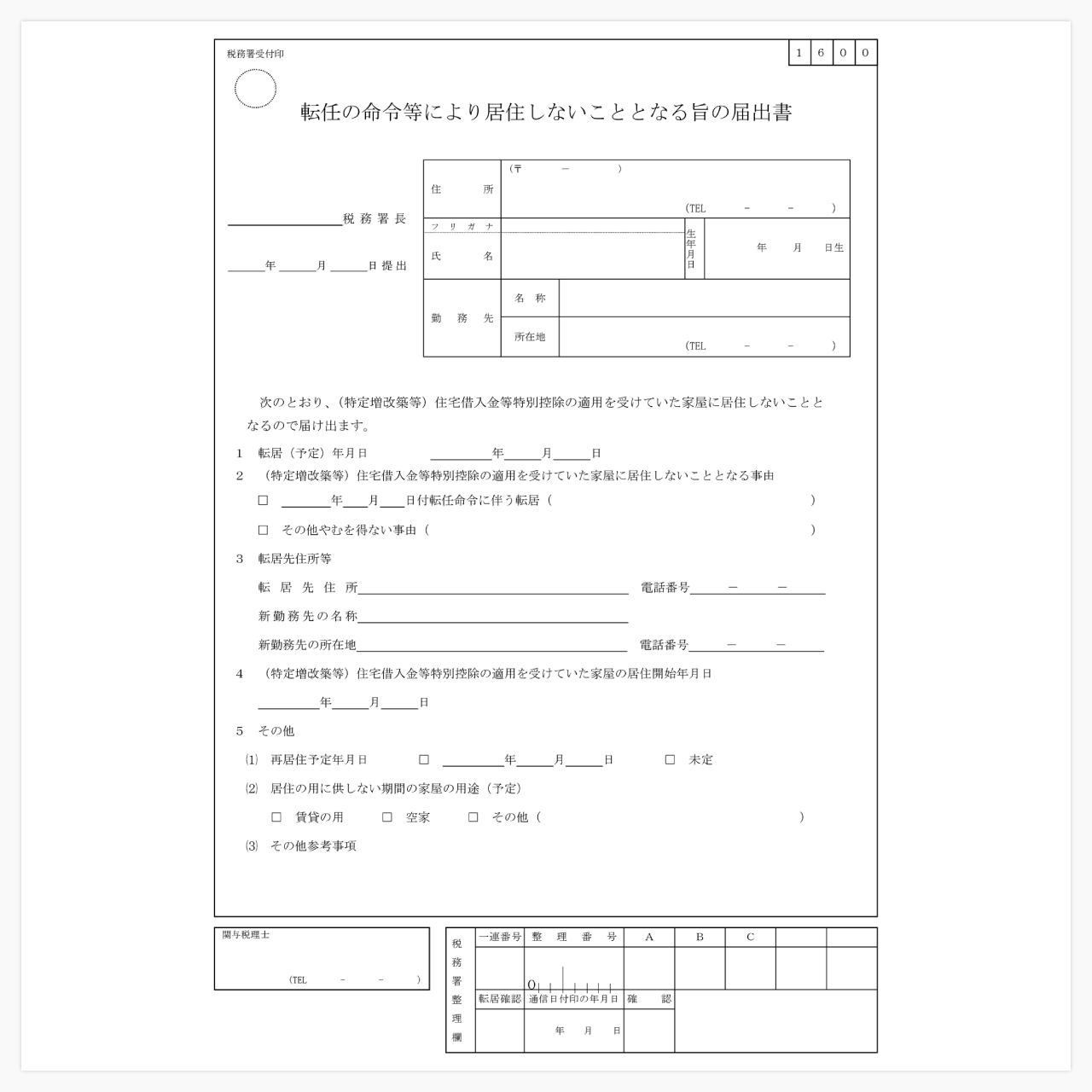 出典:国税庁「転任の命令等により居住しないこととなる旨の届出書」
