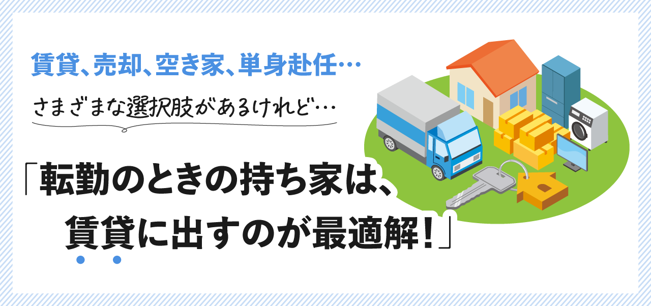 転勤時の持ち家活用法として、家賃収入を得ながらマイホームを維持できる賃貸化は、最も理想的な選択肢です。