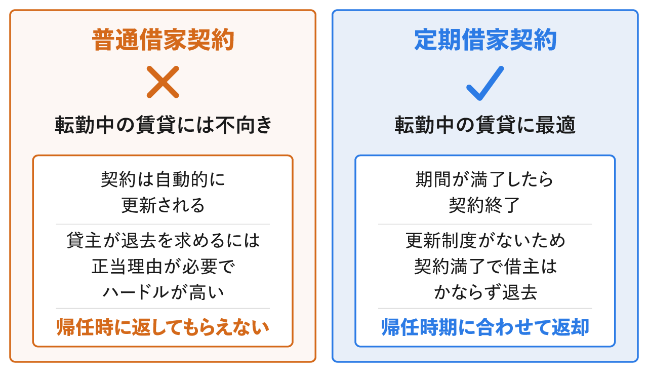 定期借家契約を正しく活用すれば、転勤から戻る際の不安を大きく軽減できます。
